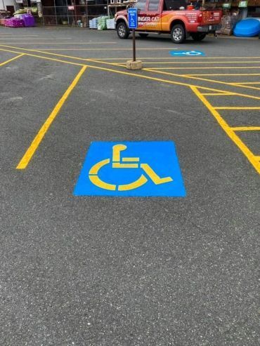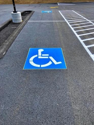 Your parking lot has a variety of arrows, handicap symbols, hashed areas, lettering, numbering and other various markings. We can re-stripe existing markings or lay out a brand new design. Handicap parking compliance is very important and can result in fines if not properly addressed. We can keep you in compliance and keep your parking lot easily navigated.